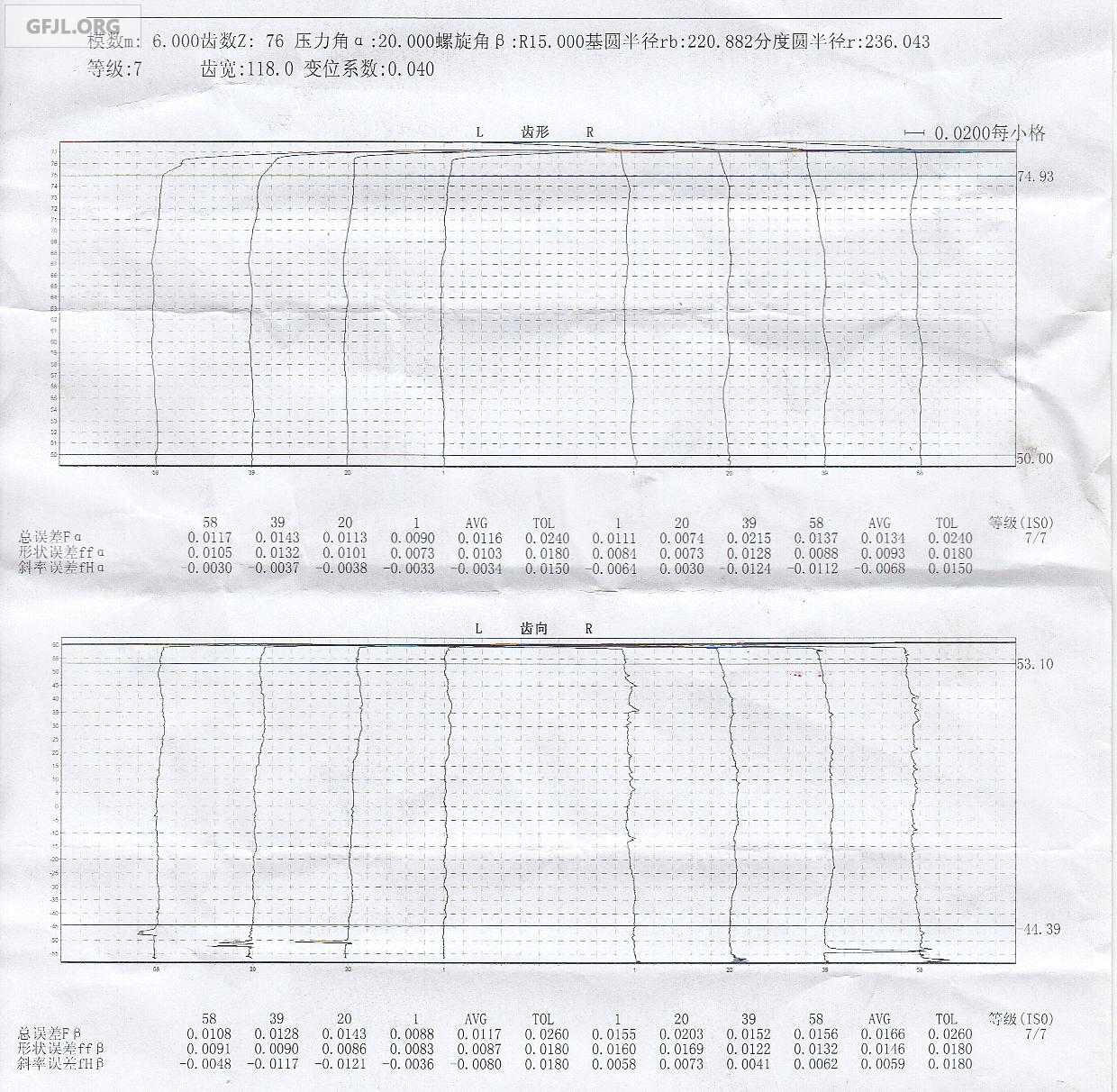 | 總共測量4個齒,在評價范圍內齒向、齒形、傾斜偏差都是合格的。-44.39下可能有臟東西沒擦凈或表面劃傷等,觀察工件表面。 |