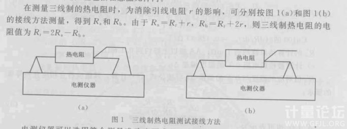 | 規程里,是用4線電阻法測的,圖a測量值為熱電阻值+1端引線的電阻值,圖b測的是熱電阻值+2端引線的電阻值,所以Rt=2Ra-Rb是對的 |
