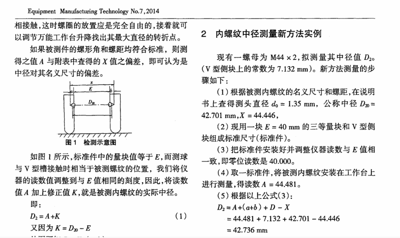 | 內螺紋測量的方法有對應的規范JJF1345-2012圓柱螺紋量規校準規范,里面講解的很詳細, |
