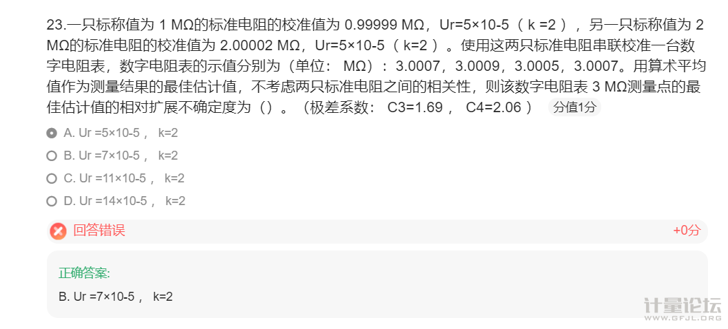 由于4次測量重復性引入的UA=9.7*10 -5 由組合電阻引入的合成標準不確定度(0.99999*5*10 -5/2)平方+ 2.00002*5*10 -5/2 )平方+后開方為UC 最后2個合并*2 |