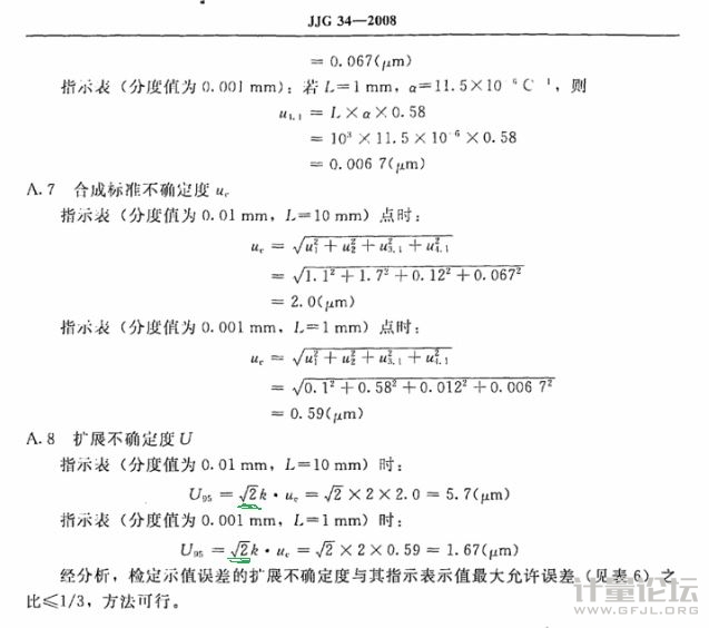 | 個人探討:根號2是因為機械指示表有兩次讀數環節,一次為零位讀數,一次為示值讀數;有根號下n的感覺;因為我沒有和寫規程的老師具體問過,個人感覺它想表達的意思是:誤差讀數和零位讀數是有關聯的,但是如果是關聯的就要用蒙特卡洛法來評定不確定度了,所以出于簡潔化考慮用了根號下n。 |