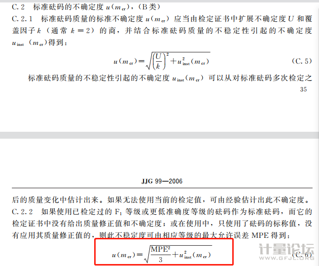 正文摘要:本帖最后由 不朽神盾 于 2022-9-7 11:33 編輯 如圖,JJG 99-2006砝碼檢定規(guī)程中,附錄C2.2標(biāo)準(zhǔn)砝碼不確定度分量計(jì)算公式有問(wèn)題,跟C2.1的說(shuō)法矛盾,C2.1應(yīng)該才是我們常規(guī)的理解吧,C2.2公式中應(yīng)該(MPE/3/2)的平方 ... |