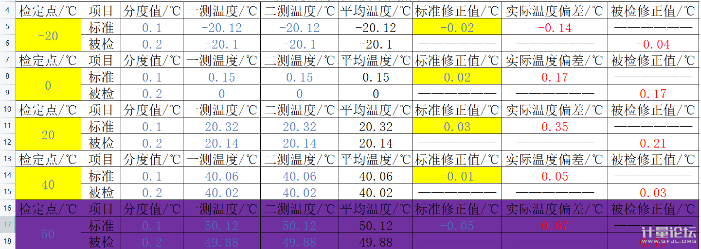 | 玻璃液體溫度計我們也是讀示值,用示值減示值,但是復評的時候,老師說不行,必須按規程中的,標準溫度可以讀示值,但是被校溫度計必須讀誤差,只能記錄誤差,然后再去減。當時想著讀示值直觀些,其實和讀誤差最終結果是一樣的,但是評審老師只認規程,規程上怎么寫,就必須怎么做。原始記錄還得修改。 |