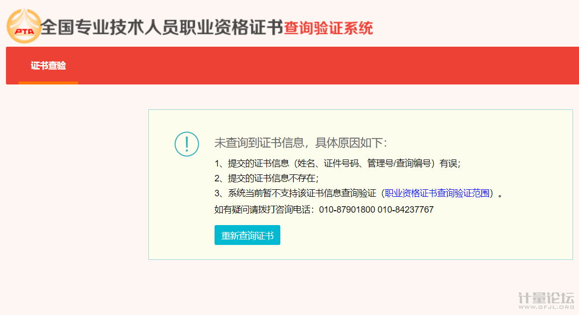 | 你看下后邊有個查驗范圍。二級注冊計量師自2020年之后才可以查詢,因為自2020年后二級計量師資格證書不是省里發了,是市監總局發的,所以能查。2019年及以前的二級計量師證書都是各省自己發的,只能去各省自己的查詢系統看看有沒有。 |