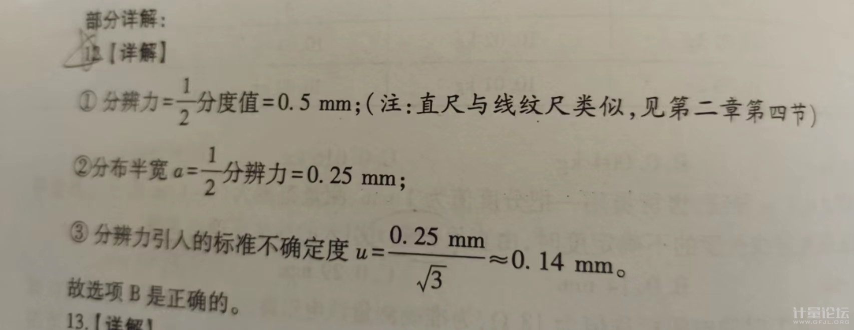 正文摘要:這個直尺的分辨力是分度值得一般,應該是0.5mm,算b類不確定度時候,直接除以根號3應該就可以了,為什么還要再除以2,不是只有數(shù)字顯示裝置的分辨力為1個數(shù)字所代表的量值δx,才取a= δx/ 2。如圖3 ... |