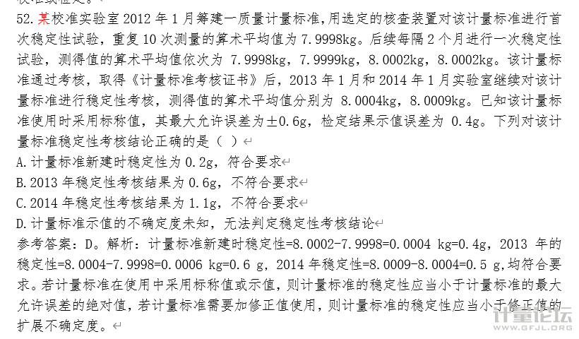 | 題目中已經說了標準用標稱值,就與允差比,要小于,所以B還算正確,但是我專門問過教材專家,說是2013年應該在9月份做穩定性比較好,且與9月份的8.0002比較 |