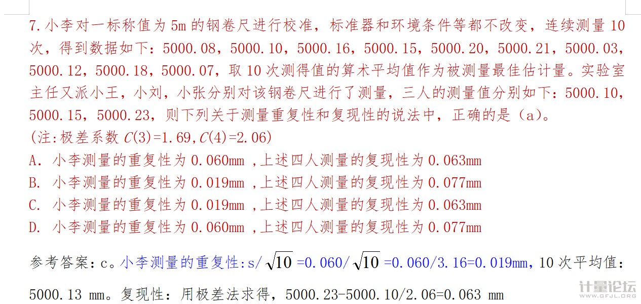 正文摘要:第一個(gè)小李的測量結(jié)果是平均值作為最佳估計(jì)值,第一個(gè)重復(fù)性的答案除了根號10,準(zhǔn)題庫的答案沒有除 |