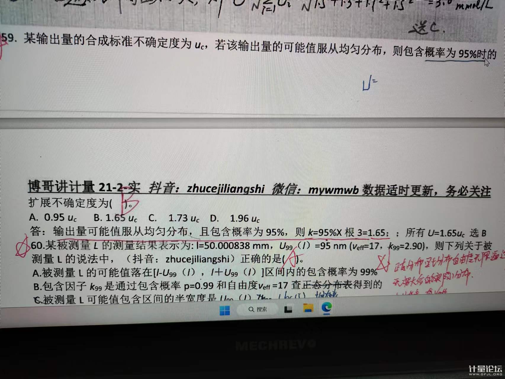 | 服從均勻分布k=1.73,此時概率為100%,若為95%就要乘以0.95,如果他沒說是三角分布就是正態分布,U95的k就是1.96 |