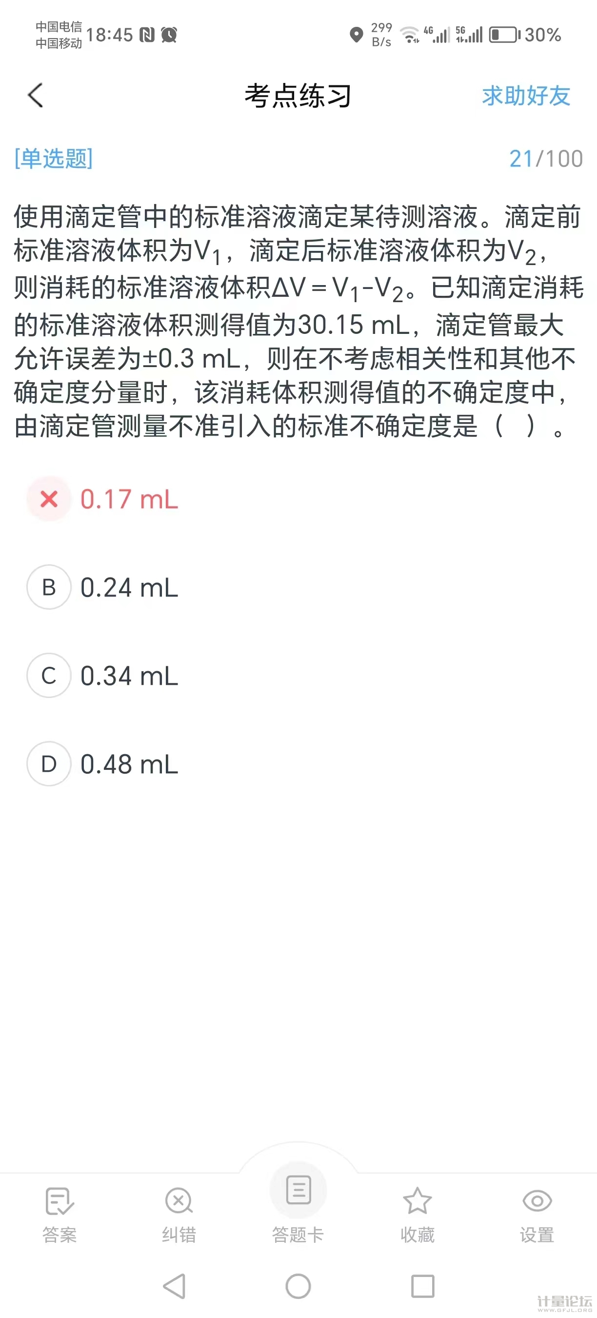 | 這道題,因為你2次都讀取了滴定管,所以每次讀取滴定管最大允差都引入了一次 |